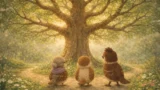 頭を下げてあいさつする雀の家族のイラスト 家族の記録